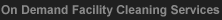 Providing routine facility cleaning services on a quarterly scheduled basis. Ride on floor scrubbing floor services. Vacuum and wet mop around racks and product items, low area maintenance